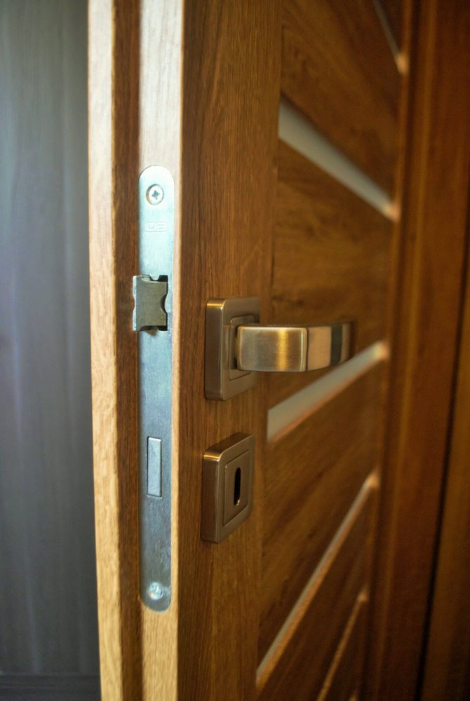 Drzwi wewnętrzne. Drzwi wewnętrzne polskiego producenta INTENSO, model: NANCY, kolor: robinia+ szkło bezpieczne matowe grafit, okucia dedykowane do drzwi szklanych