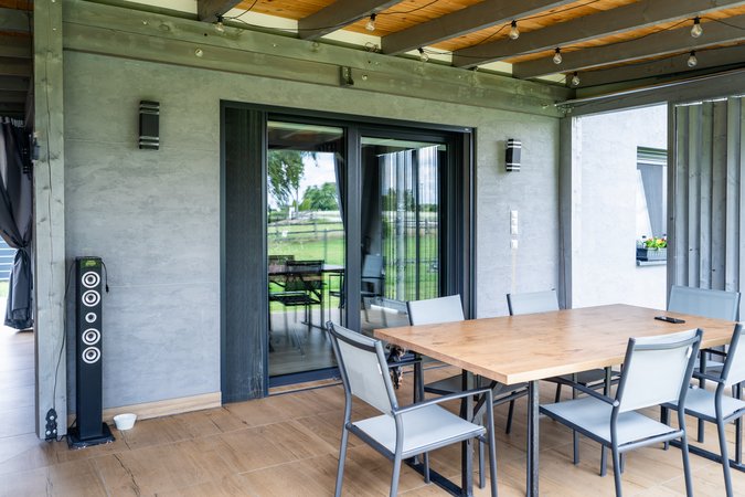Drzwi Przesuwane Tarasowe PVC. Drzwi przesuwne tarasowe Iglo 5 PSK, kolor: antracyt, automat MACO w kolorze srebrnym.
