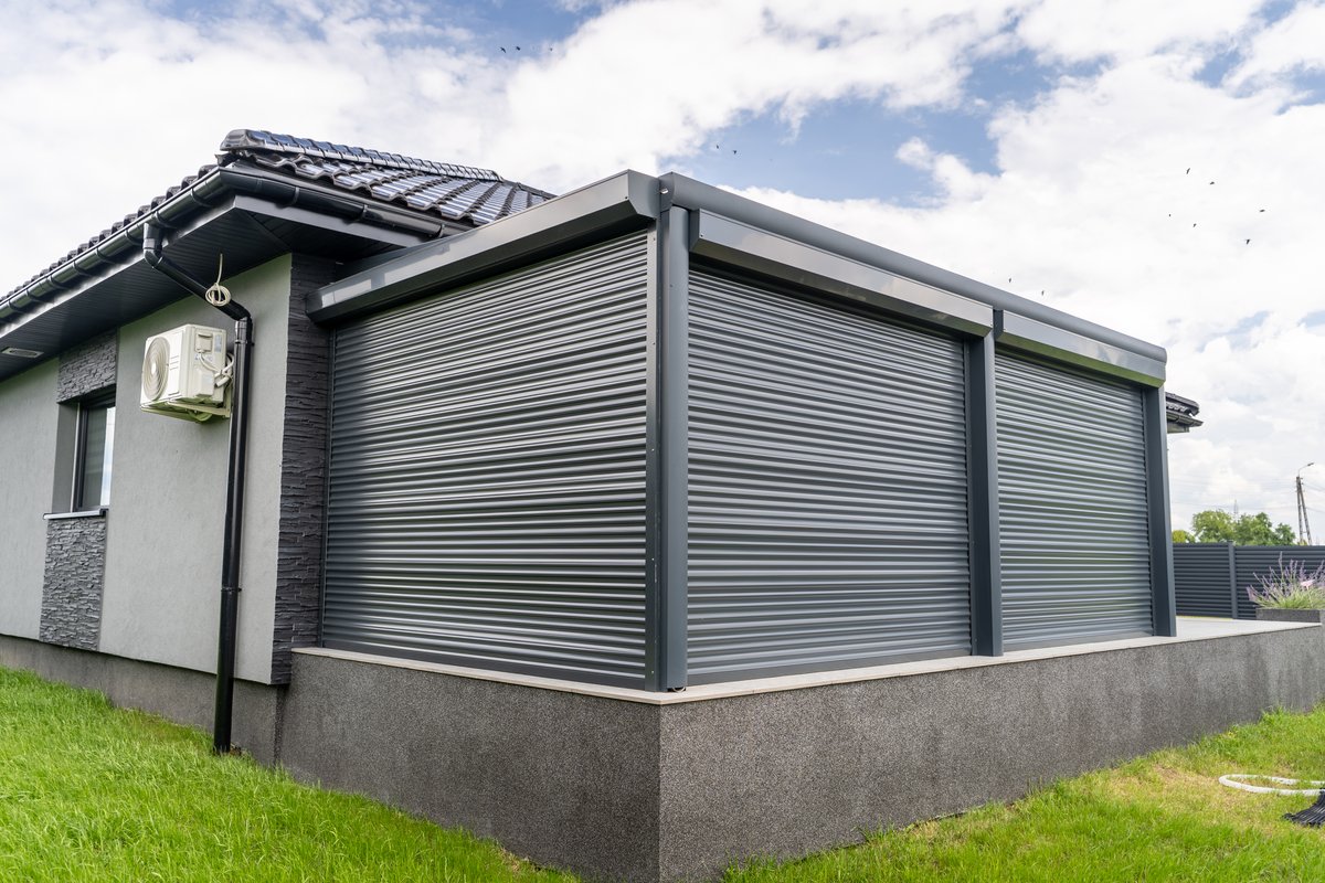 Montaż Okien PVC i Rolet zewnętrznych. Okna IGLO 5, kolor: Antracyt, Rolety Portos kolor Antracyt, panerz rolety rozdzielony, na środku prowadnica podwójna