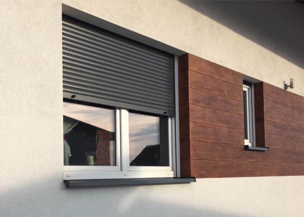 Montaż okien i rolet zewnętrznych. Okna Drutex profil: IGLO 5 Classic kolor: biały Rolety Portos system: IT2000 kolor: pancerz antracyt, prowadnice białe Parapet zewnętrzny ocynkowany Kolor: antracyt RAL 7016