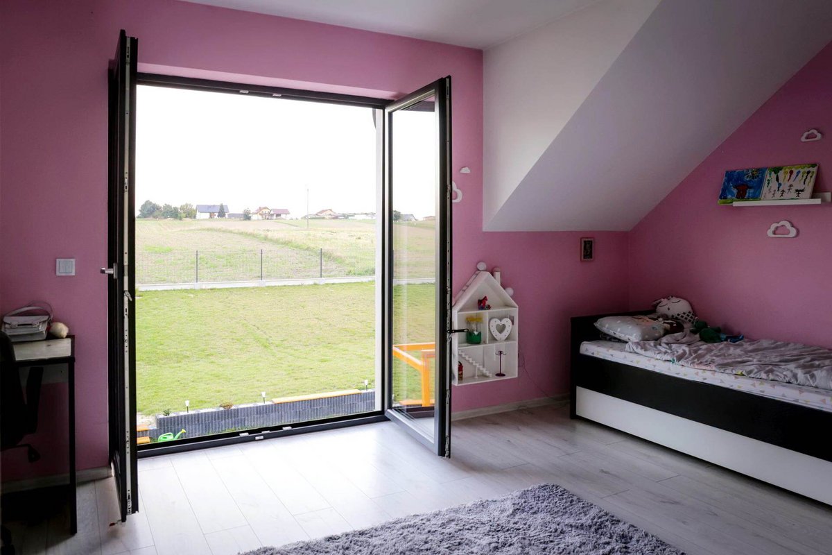 Montaż Okien PVC i Rolet zewnętrznych. Drzwi balkonowe IGLO 5 Classic, słupek ruchomy, kolor: Antracyt